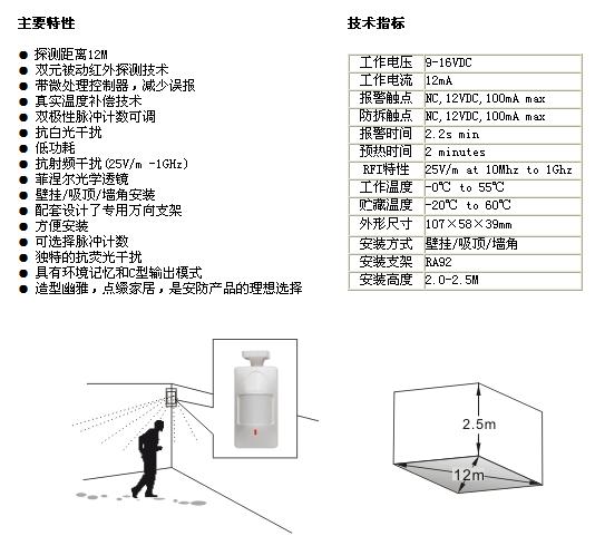 HC-9410PR雙元紅外被動移動探測器。是HC系列產(chǎn)品中又一最廣泛用于家庭使用的探測器。具有信號捕捉能力強,誤報漏報率低,低功耗和真實溫度補償?shù)奶攸c。產(chǎn)品技術(shù)含量高、制作工藝考究、外觀造型高雅。而且性能穩(wěn)定,使用壽命期長。 HC-9410PR出廠時配有RA93安裝支架,可以方便地吸頂、壁掛或墻角安裝。