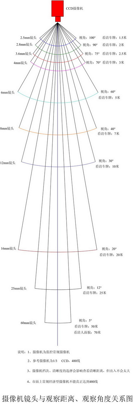 此主題相關圖片如下:鏡頭大小與監控距離、角度關系圖.